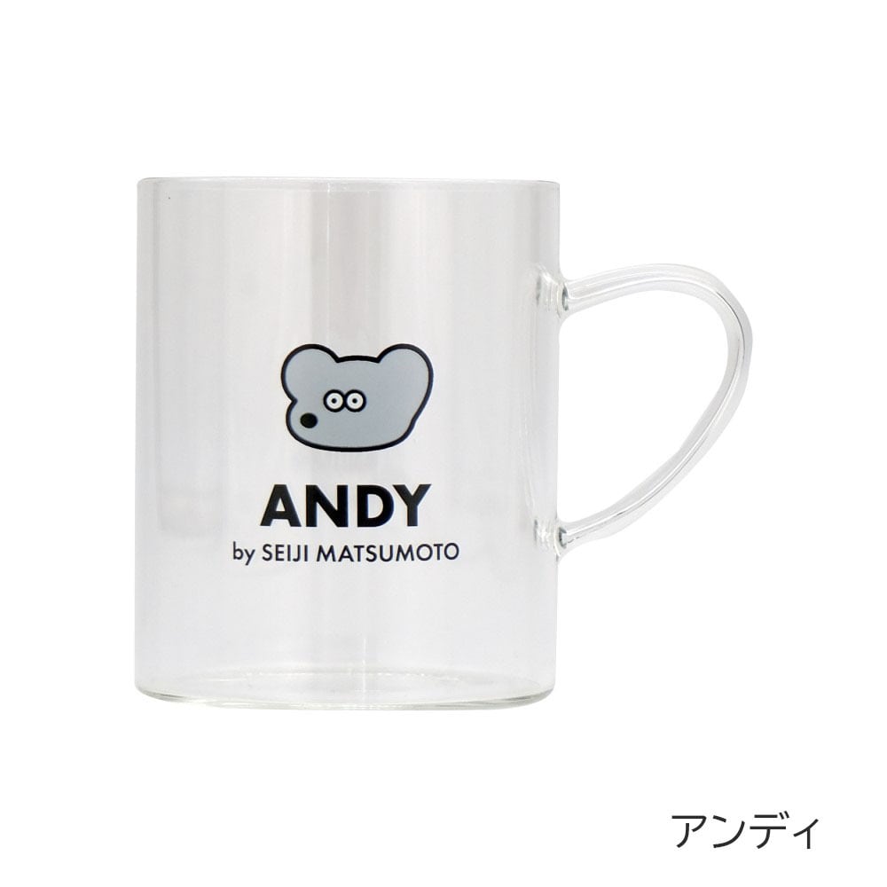 ANDY/アンディ 耐熱マグ【耐熱ガラス ガラスマグ コップ ガラス ガラスコップ 330ml 330cc おしゃれ かわいい グラス ねずみのANDY 日本製 国産 来客用 電子レンジ ギフト プレゼント】