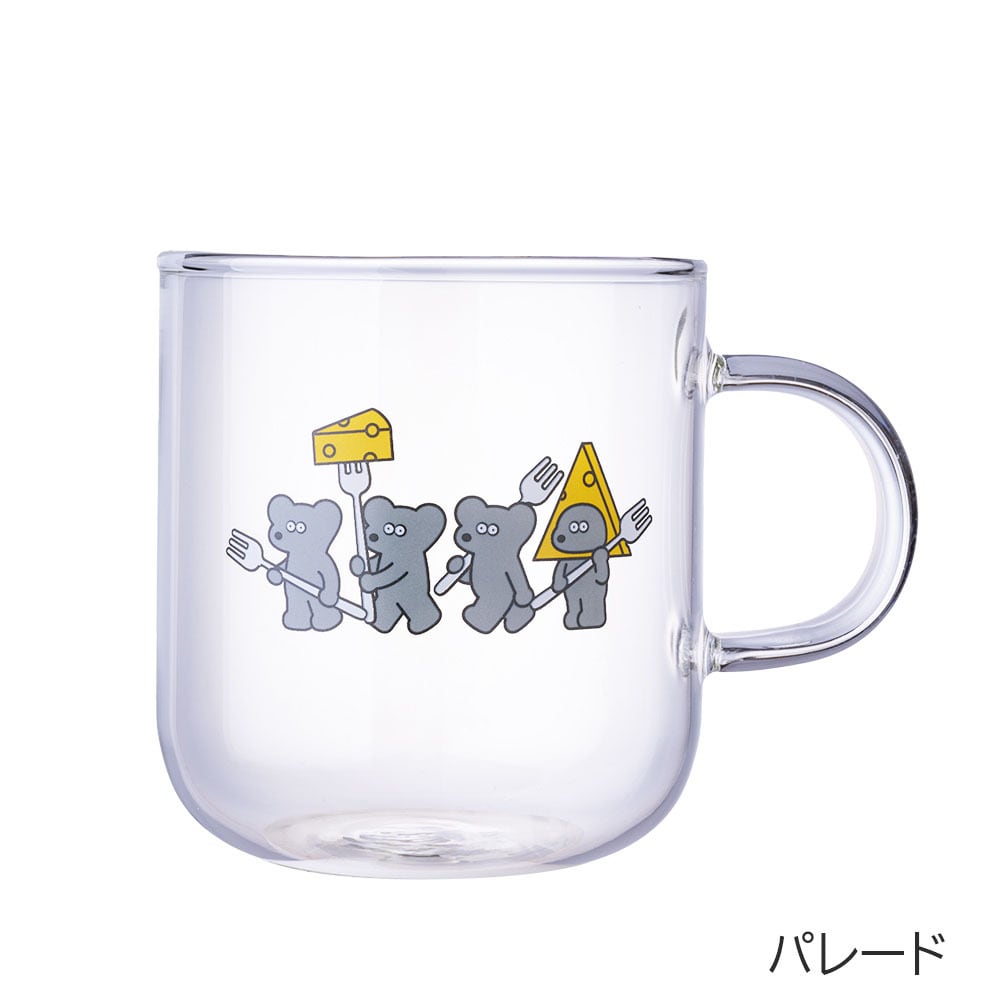 ホットでも、アイスでも使える!ねずみのANDY 耐熱ガラスマグ