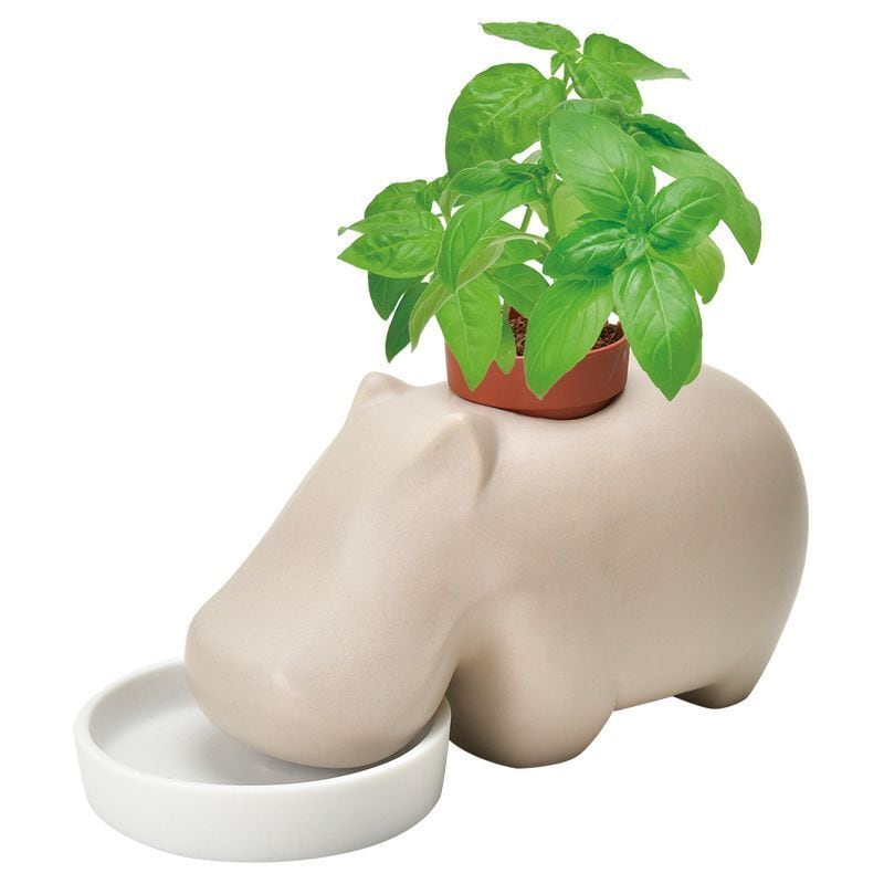 hippoplant ヒポプラント アップルミント バジル GD-982【栽培セット 食べられる 瀬戸焼 カバ ハーブ スタイリッシュ インテリア おしゃれ プレゼント ギフト 育てる 植物】