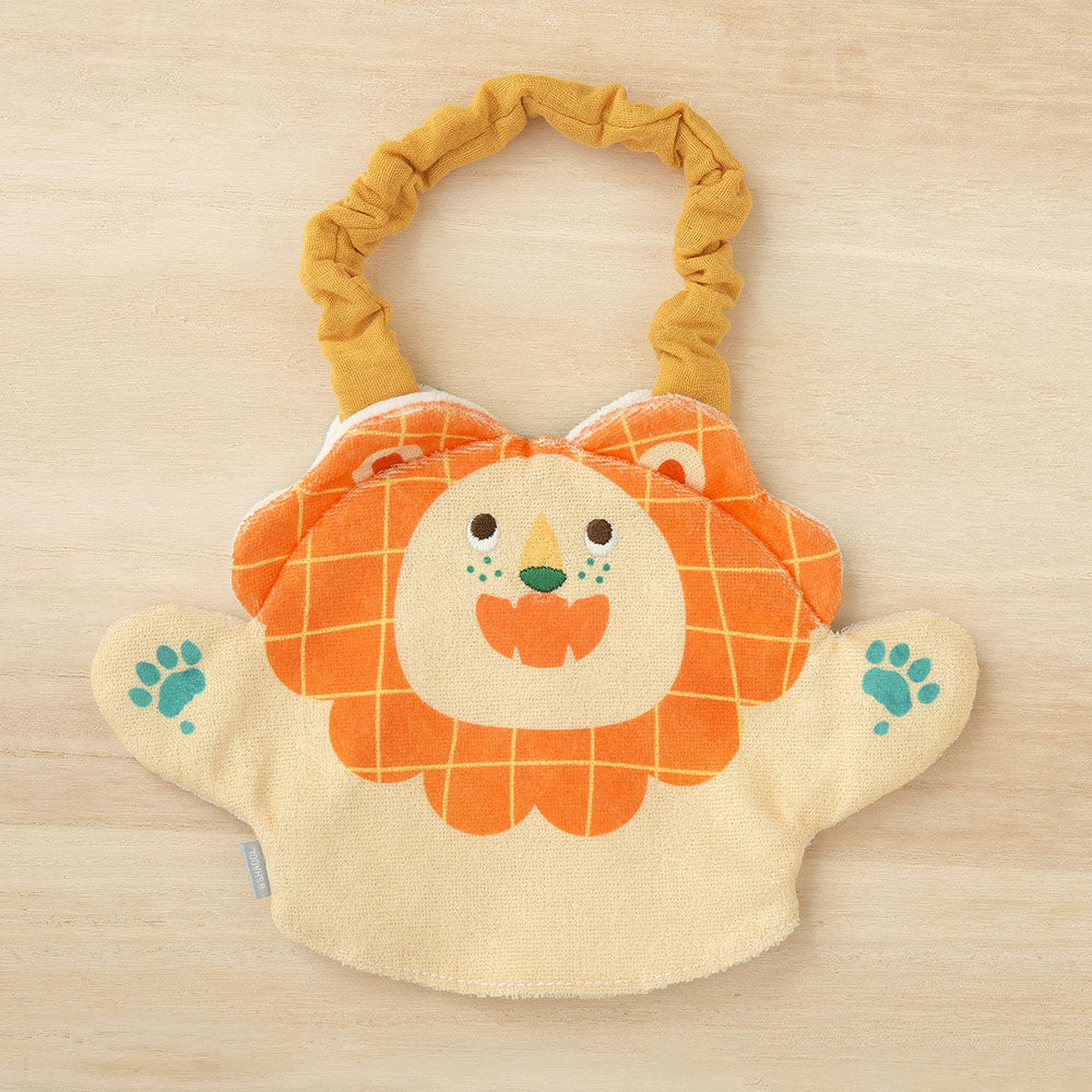 【スタイ⇔パペットの2way】通常のスタイだけではなく、ストラップの紐を外してポケット部分に手を入れることでパペット遊びも楽しめます。手を入れて様々に動かせるので、触れ合い遊びに最適。赤ちゃんとの楽しいコミュニケーションが自然に始まります。